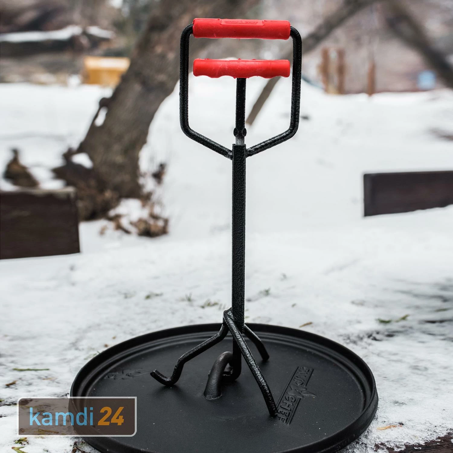Der von ermöglicht ein des Deckels während des Garens mit dem . Durch die praktische Konstruktion können Sie den Deckel , sodass keine Asche in den Topf gelangt, auch wenn Sie auf dem Deckel Holzkohlebriketts platziert haben. Am Griff ist eine integriert.