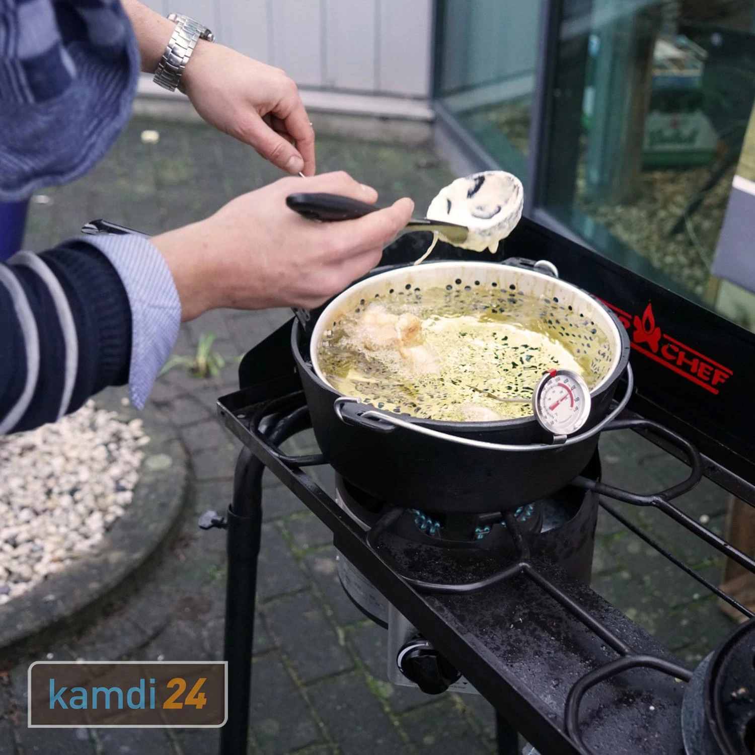 Die optimale Hitzeverteilung und -speicherung des Materials sorgt für perfekte Ergebnisse. Dank der Vorbehandlung mit können Sie sofort mit dem Frittieren loslegen.