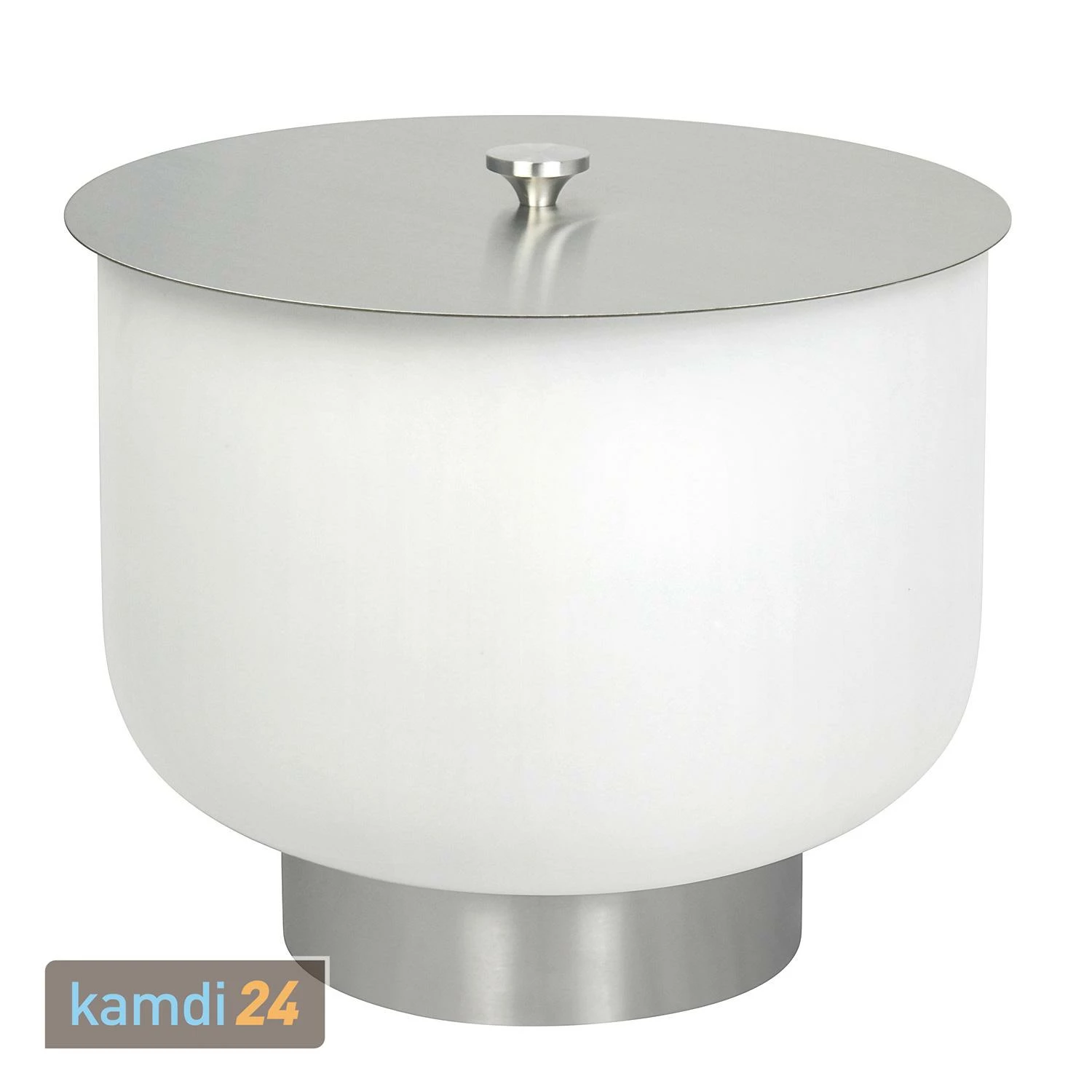 Im Lieferumfang sind der abgebildete Sockel und Deckel bereits enthalten. Beides besteht aus Edelstahl.