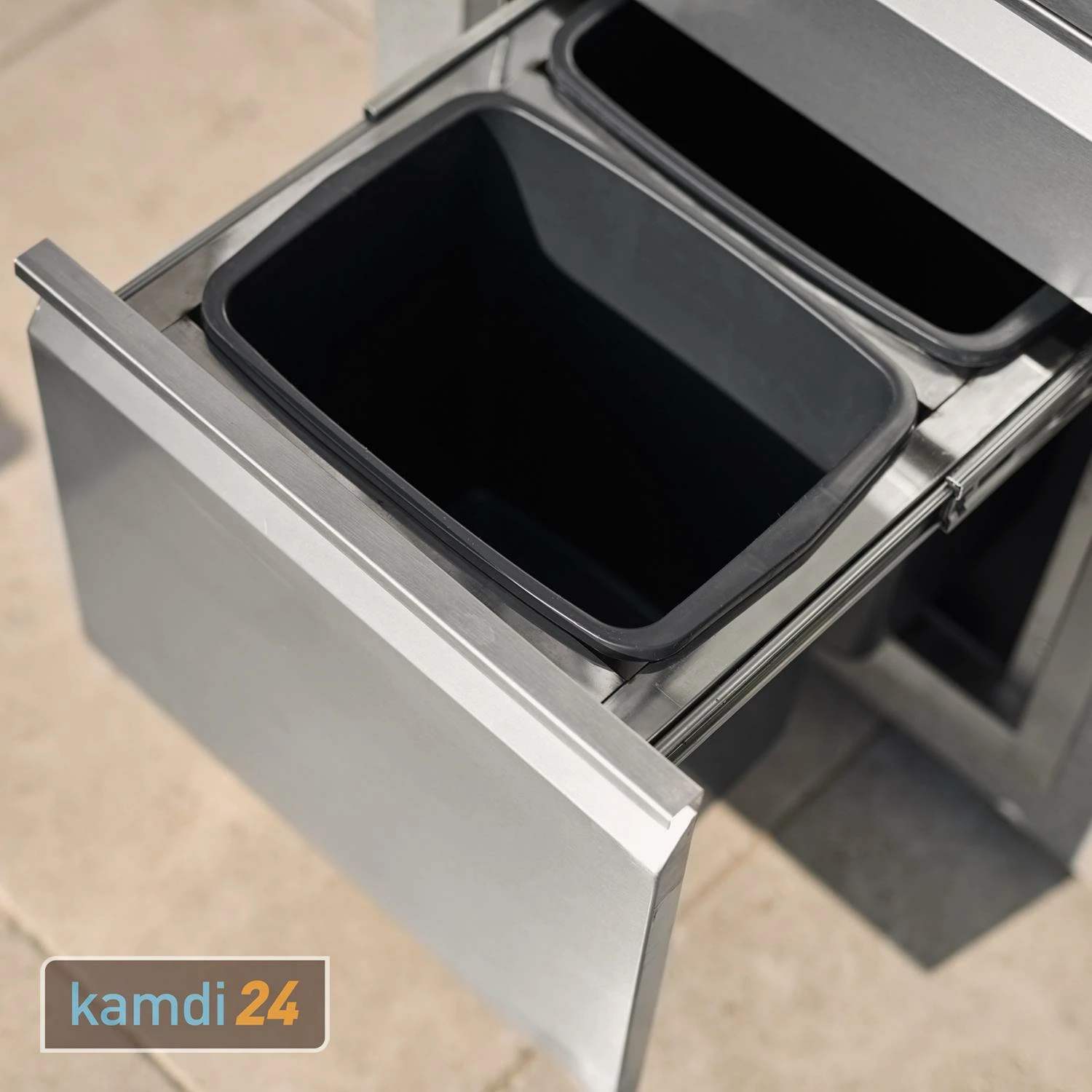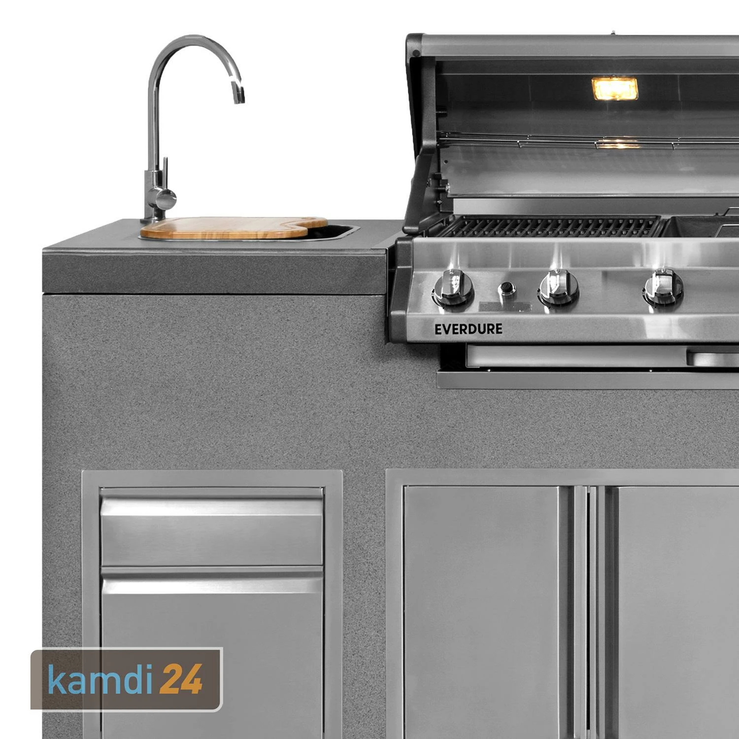 Nutzen Sie die das mitgelieferte und das praktische Spülbecken zur Vor- und Nachbereitung Ihres Grillevents. Die unter der Spüle erleichtern Ihnen die Entsorgung von Grillabfällen. Unterhalb des Grillbereiches finden Sie mehrere Schränke zum Verstauen von , Küchenutensilien und Gewürzen.