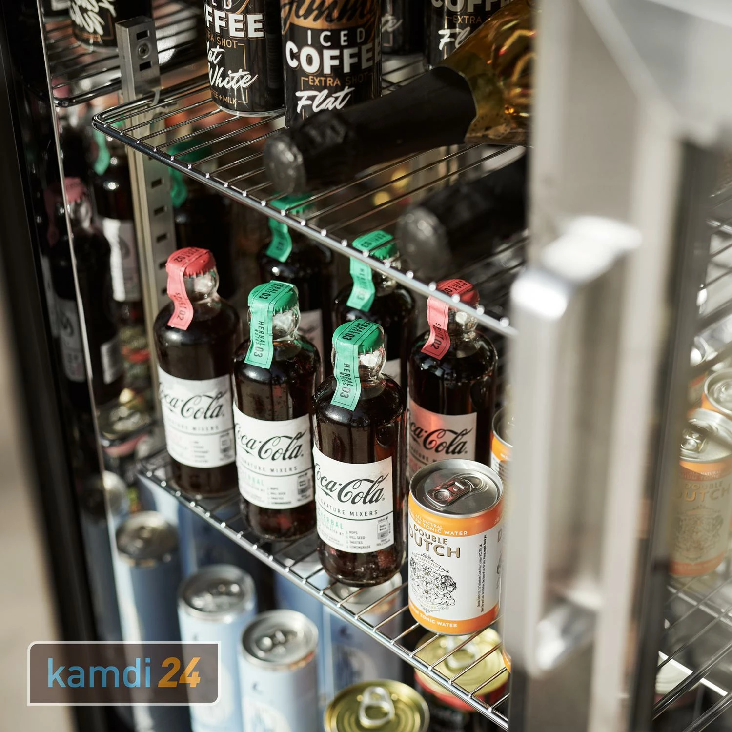 Gekühlte Drinks immer griffbereit: Der bietet ausreichend Platz für Getränkeflaschen und -dosen. Damit Sie auch in der Dämmerung noch das passende Getränk finden, wird das Innere des Kühlschranks mittels LED-Lampen beleuchtet. Bei Nichtbenutzung der Grillküche können die beiden Kühlschränke abgeschlossen werden.
