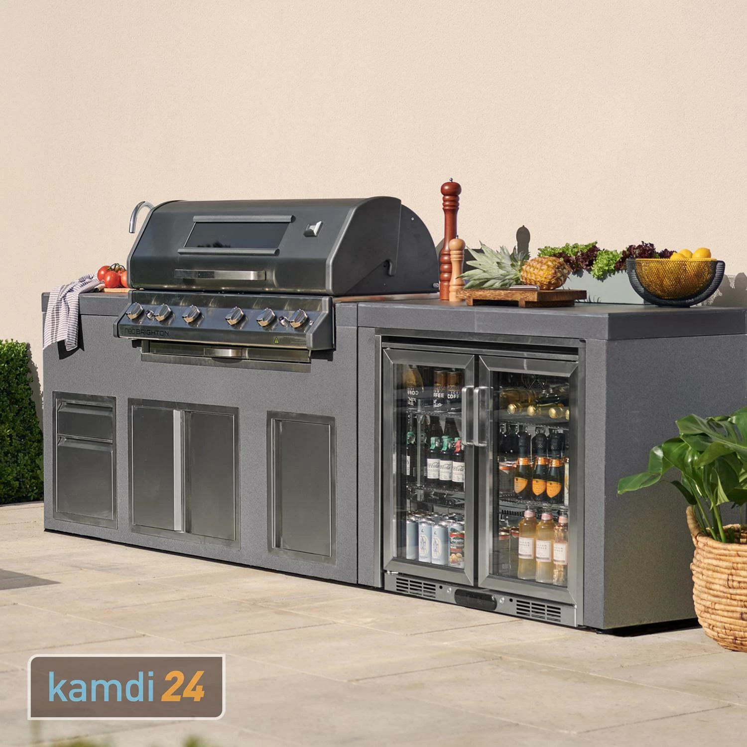 Die moderne von bietet alles, was man zur Vorbereitung und zum Grillen draußen braucht: Der leistungsstarke und einer Gesamtleistung von 25 kW wird ergänzt von einem praktischen , einem sowie großzügigem Stauraum inklusive Abfallbehälter. Diese Outdoorküche ist der Garant für ausgedehnte Grillpartys im Freundeskreis, bei Firmen- oder Vereinsfeiern und DER Top-Seller aus Australien!