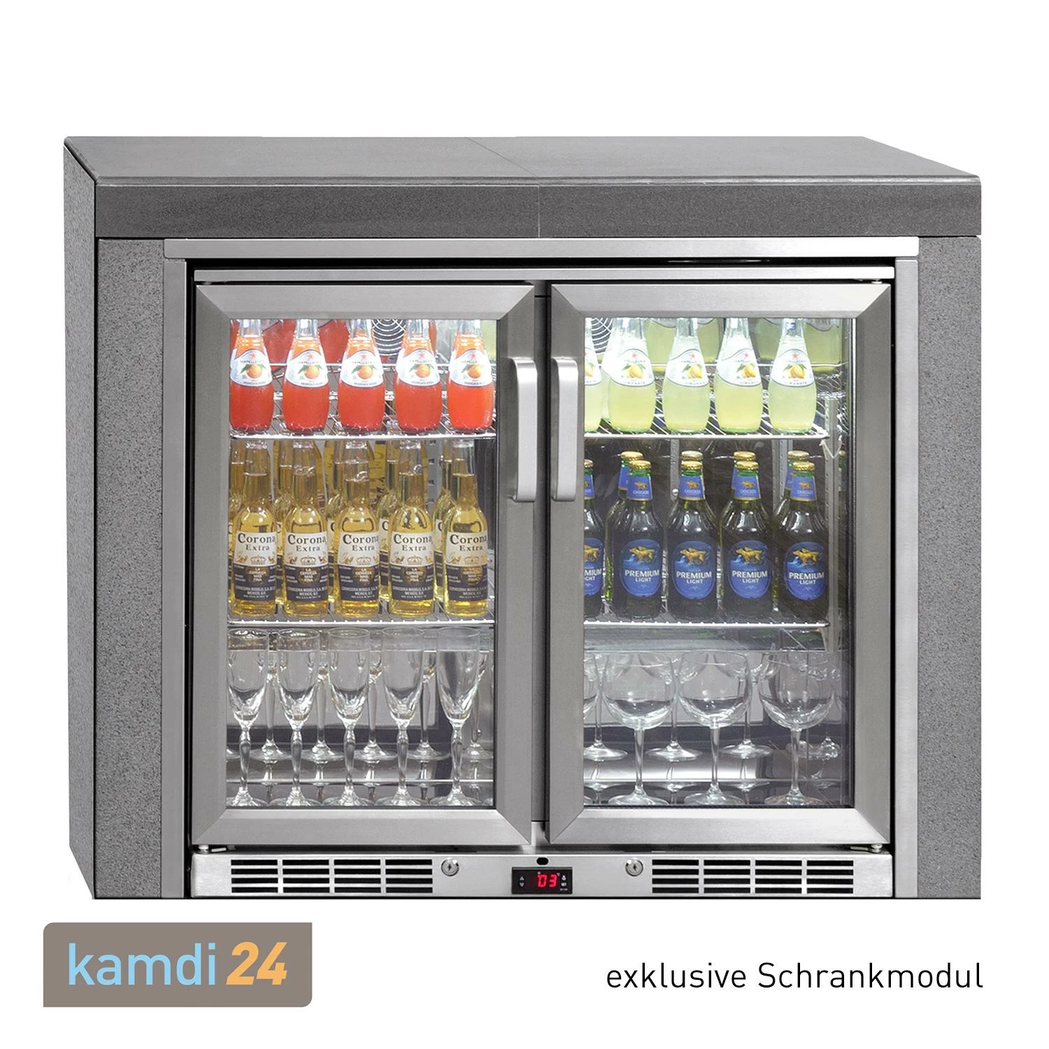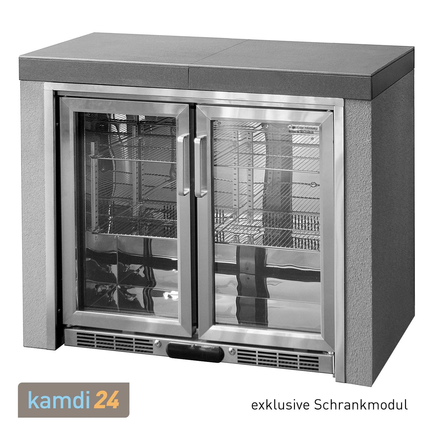 Zu jeder gut ausgestatteten gehört nicht nur ein , sondern auch ein passender Kühlschrank. Der von bietet mit ausreichend Platz für Ihre gekühlten Drinks – egal ob Getränkeflaschen oder -dosen. So haben Sie den gekühlten Getränkenachschub immer griffbereit. Damit Sie auch in der Dämmerung noch das passende Getränk finden, wird das Innere des Kühlschranks mittels beleuchtet. Bei Nichtbenutzung der Grillküche kann der Kühlschrank abgeschlossen werden.