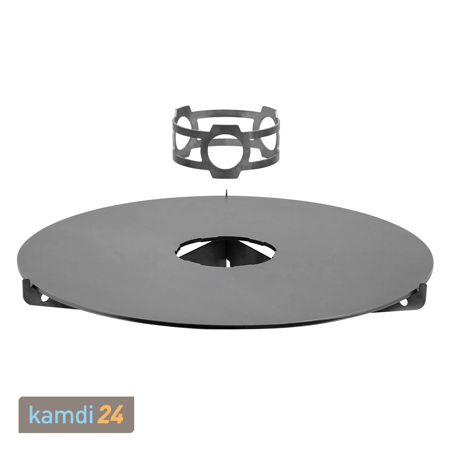 Machen Sie Ihre zur Outdoor-Küche: Mit der von können Sie auf der grillen, braten und kochen. Die besteht aus einer 6 mm dicken , welche in der Mitte eine Öffnung hat, sodass das Feuer auch unter der Platte mit Frischluft versorgt wird. Auf dieser Öffnung können Sie den mitgelieferten platzieren, auf welchem Sie , oder komfortabel aufs Feuer setzen können. Der Kochaufsatz ist so konstruiert, dass die Luftzufuhr für das Feuer auch dann gewährleistet ist, wenn ein Topf auf der Öffnung steht.