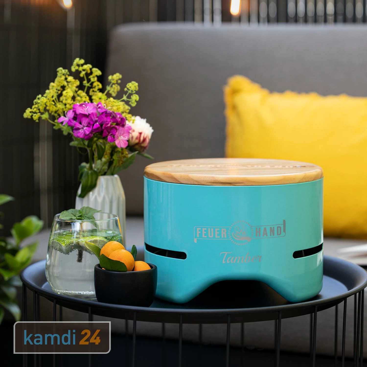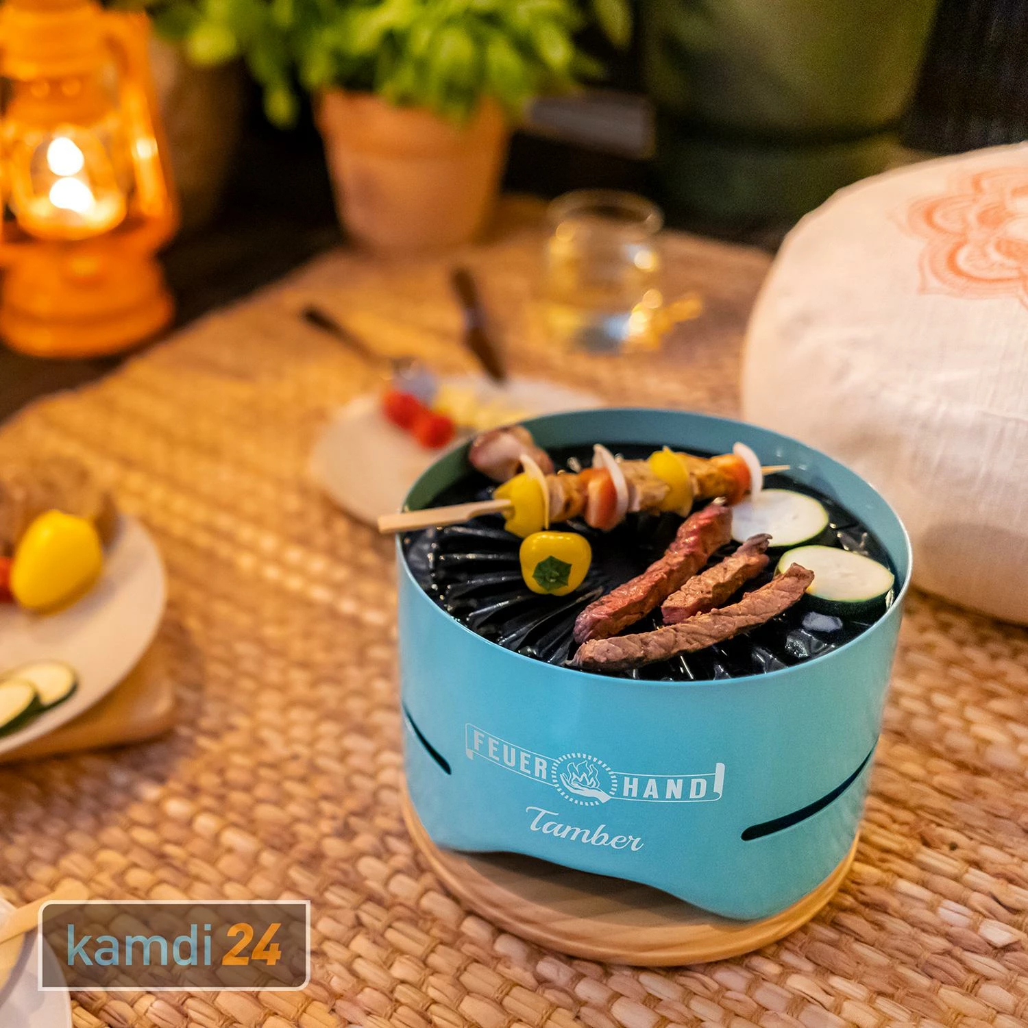 Mit einer Füllung ist der Tamber in 15 bis 20 Minuten betriebsbereit und Sie können bis zu 1,5 Stunden grillen. Der Tamber lässt sich nach dem Grillen leicht auseinandernehmen und reinigen. An dem emaillierten Grillrost haften keine Speisen an. Er ist zudem spülmaschinengeeignet. Nach dem Grillen bietet der Tamber-Deckel die passgenaue Stellfläche für die , die Sie zusätzlich erwerben können, und am späten Abend Ihren Tisch erhellt.
