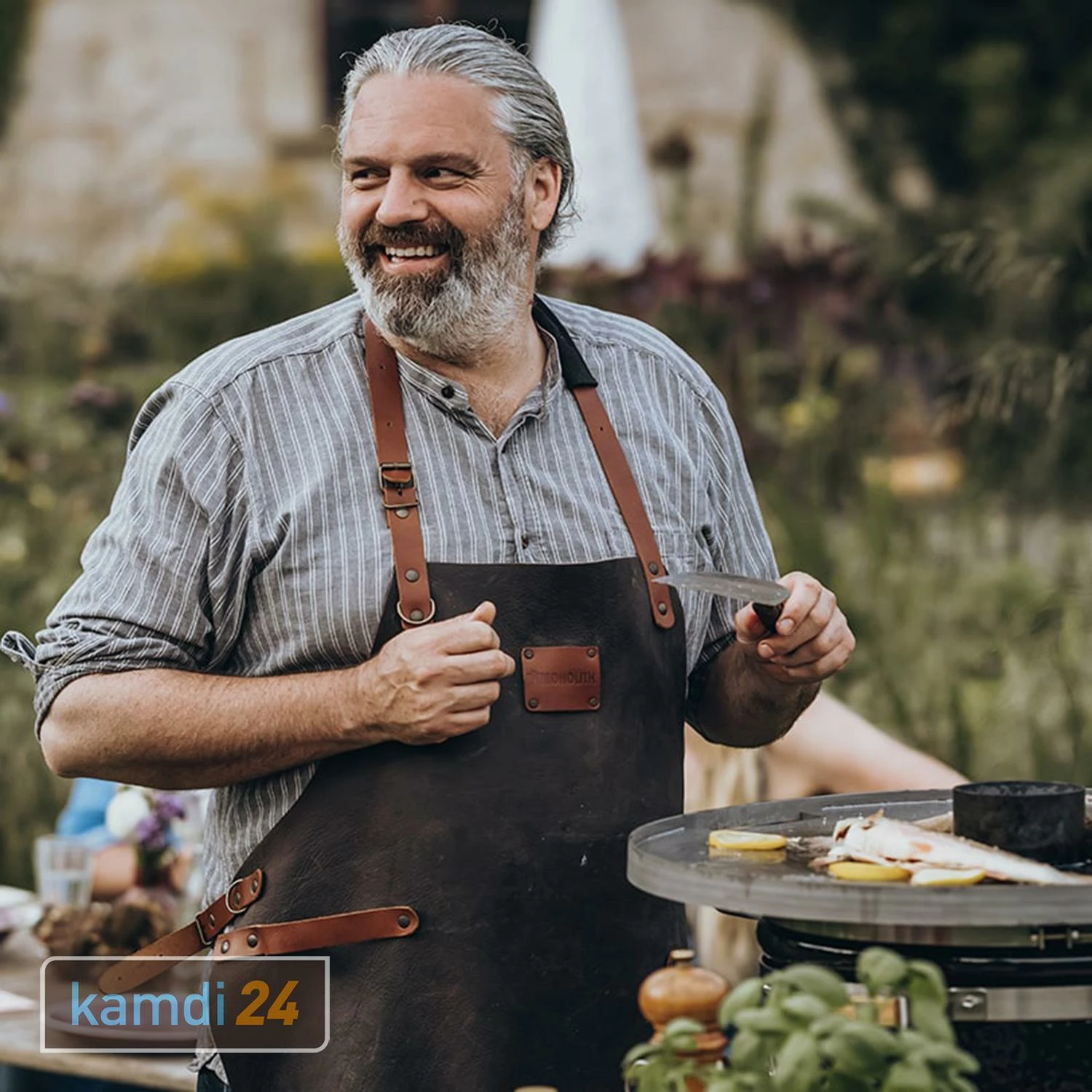 Die von bietet maximalen Schutz und sieht gut aus. Durch eine spezielle Lederbehandlung ist sie sowohl leicht als auch geschmeidig. Über den Nackriemen können Sie die Schürze so einstellen, wie Sie es mögen.