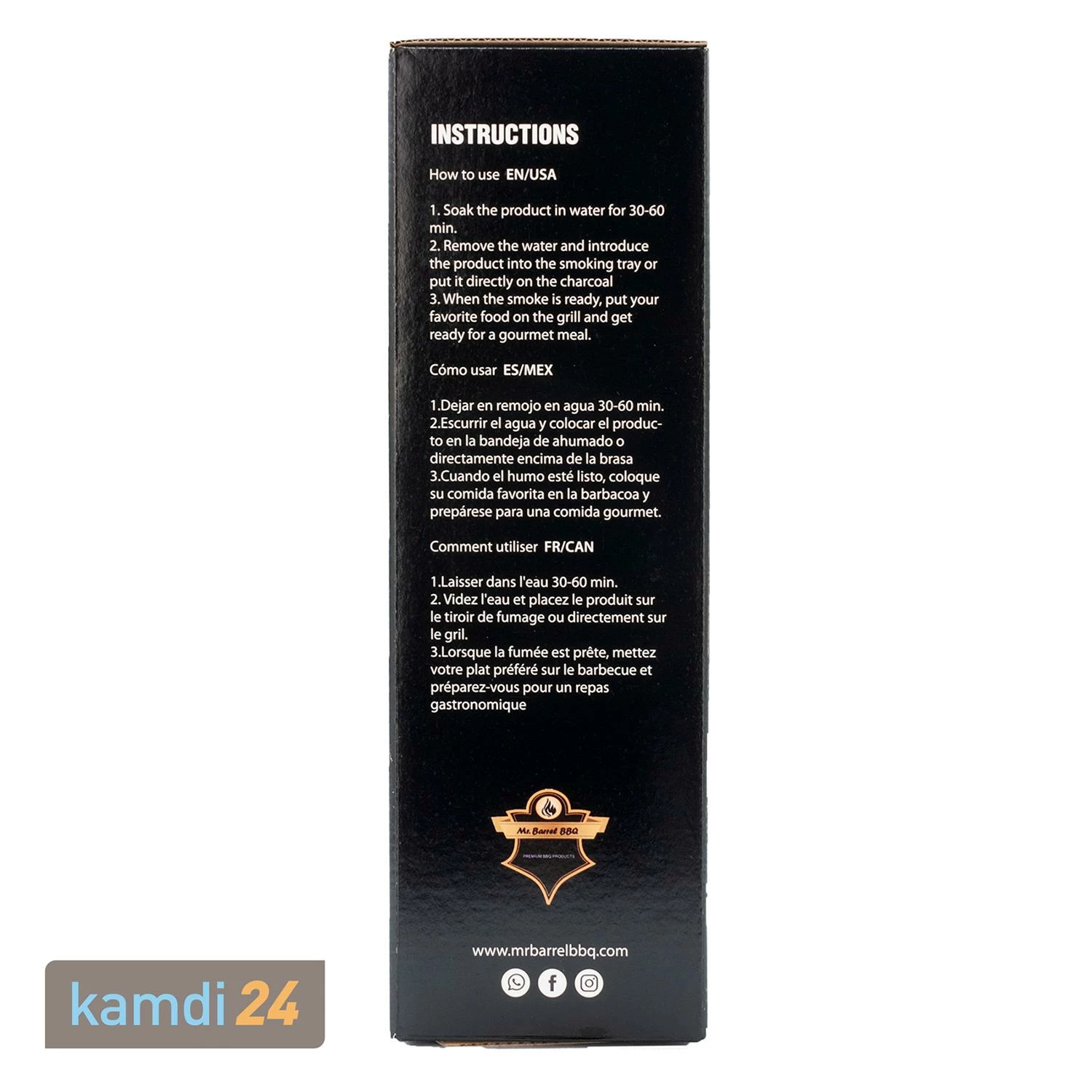 Im erhalten Sie die Räucherhölzer von in den Sorten Whiskey, Red Wine, Sweet White Wine und Cognac: