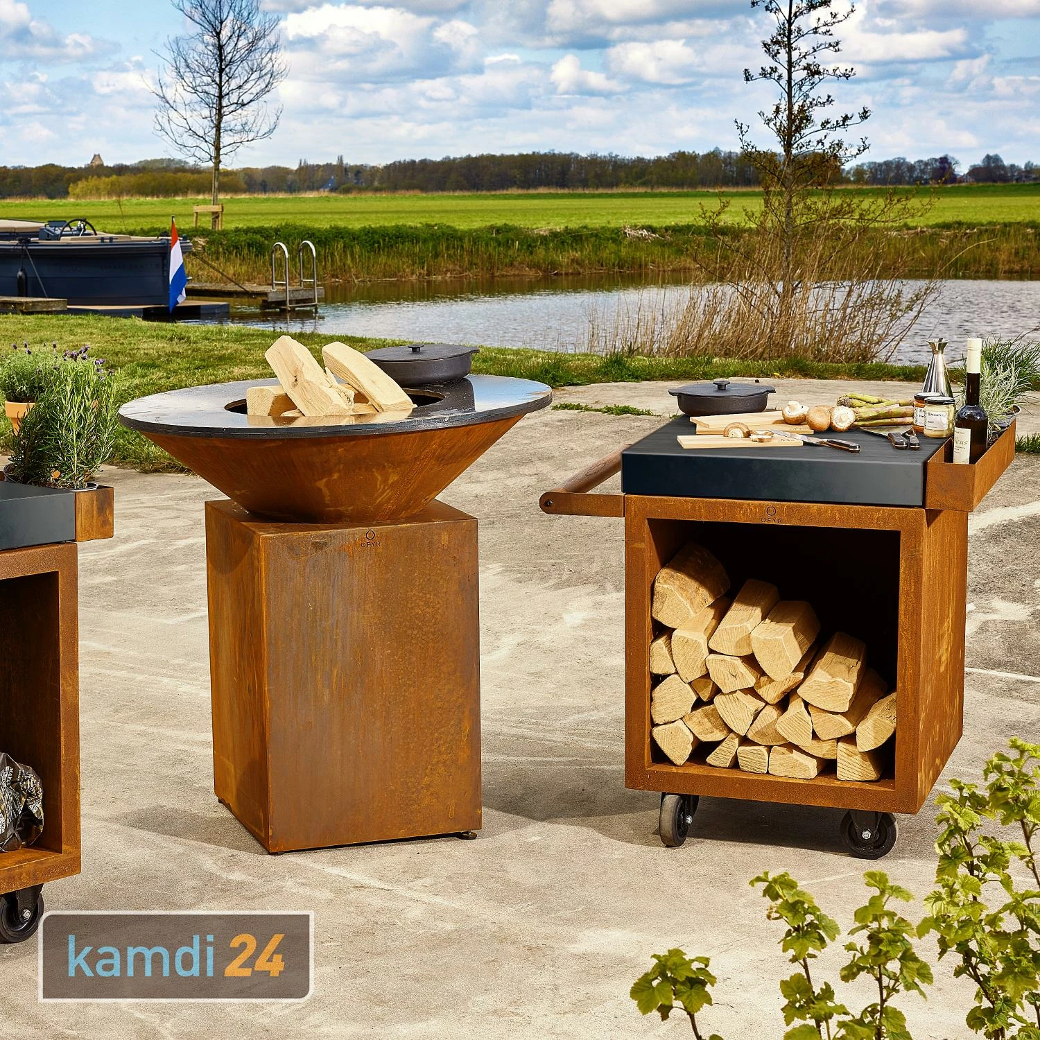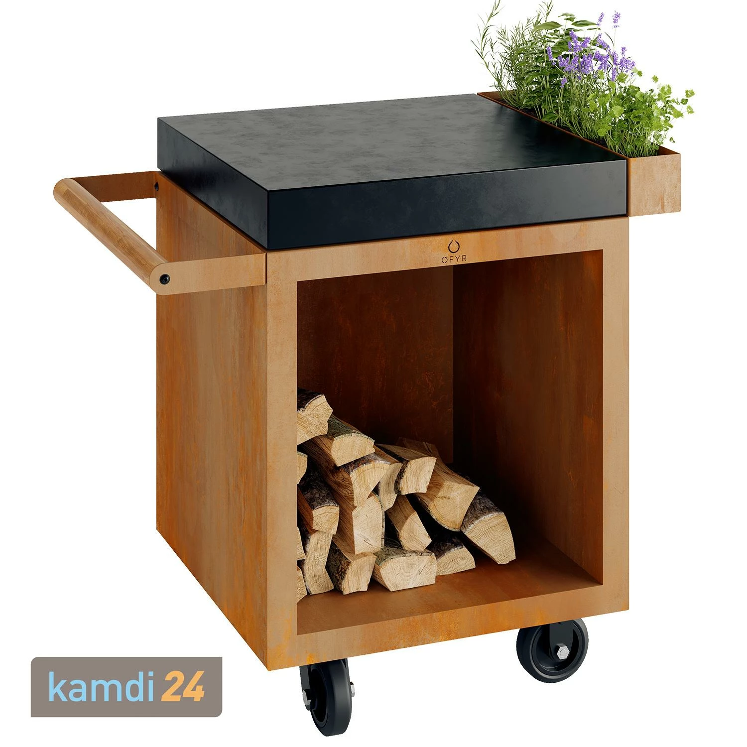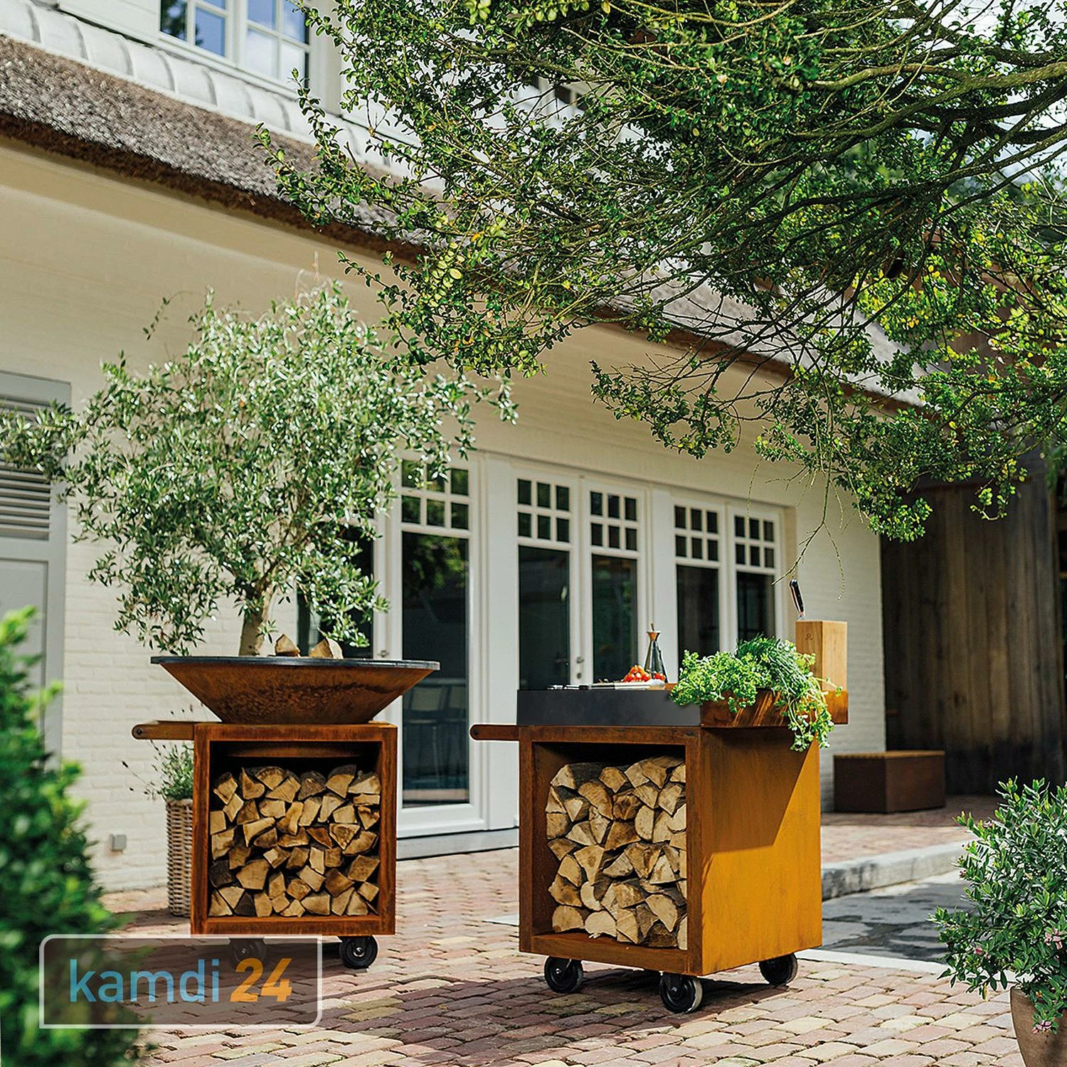 Zusätzlich bietet ein viel Platz für Ihren Brennvorrat. Beachten Sie dabei, dass die kleineren Modelle bei voller Holzladung leichter zu bewegen sind als die Größeren. Bei Letzteren können jedoch mehrere Personen Speisen auf dem Brett zubereiten.