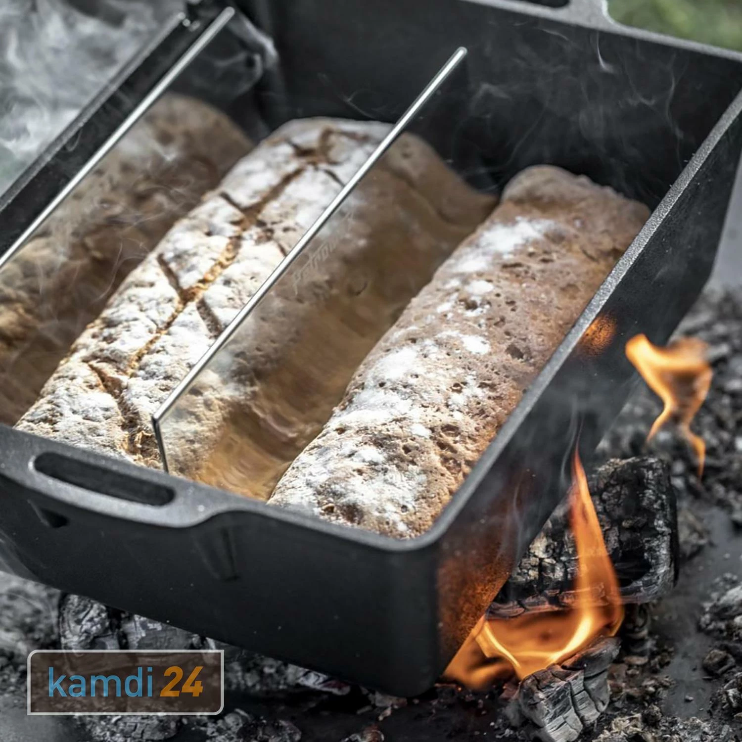 Das von ist die ideale Ergänzung für Ihre Draußen-Küche, um in der Glut knusprige Baguettes oder Ciabattas mit schöner Kruste zu backen. Der besitzt die perfekte Passform für die gusseisernen Kastenformen und ; für die größere Kastenform können Sie zwei Baguettebleche mit einer Lasche miteinander verbinden.