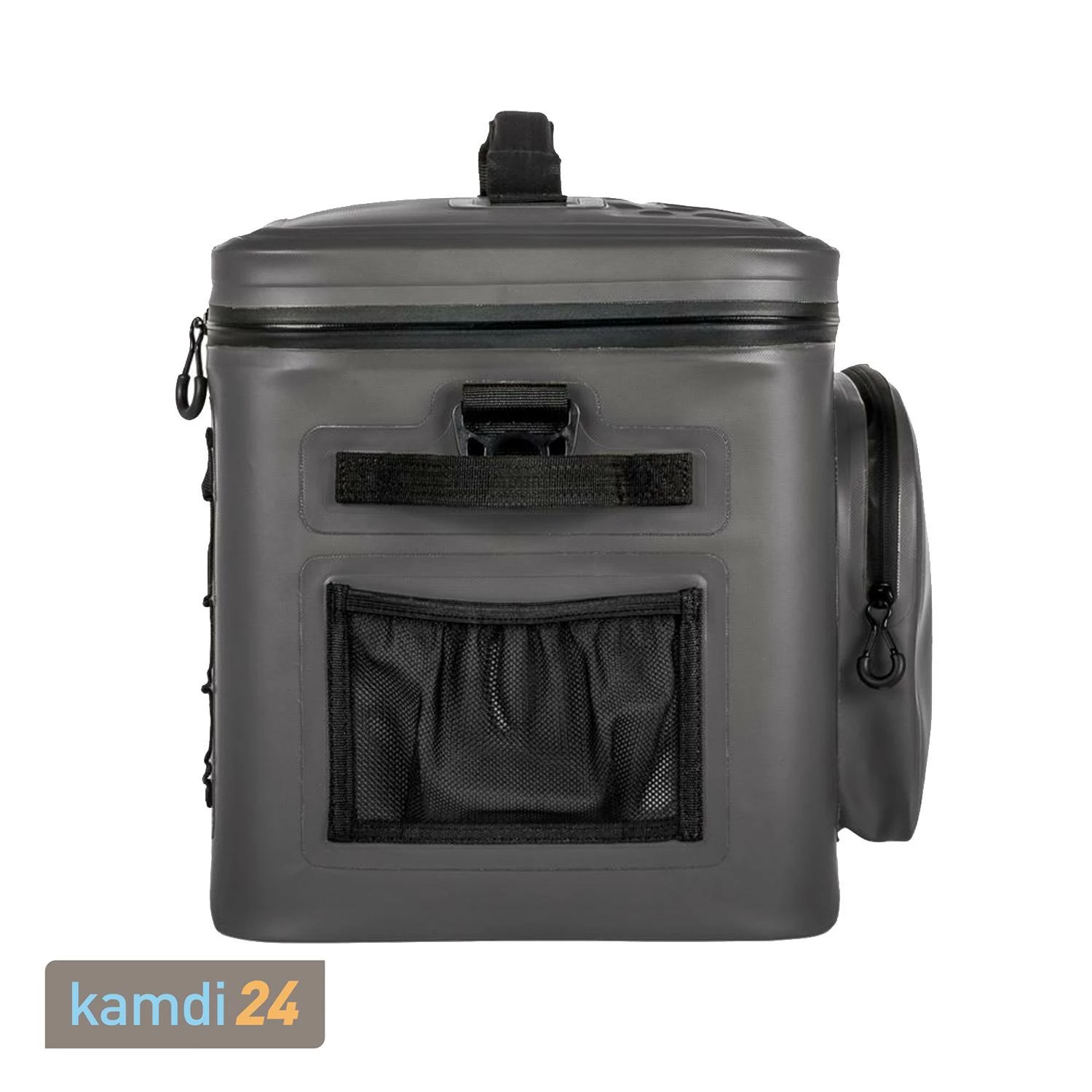 Die ist mit einem und einem ausgestattet, sodass Sie sie bequem transportieren können. Mittels für Karabiner und Co. lässt sich die Tasche zudem sicher in Ihrem Auto oder Boot befestigen. Weitere Ausstattungsmerkmale der Petromax-Kühltasche sind vier an der Außenseite angebrachte Taschen, etwa für oder , und ein praktischer Flaschenöffner.