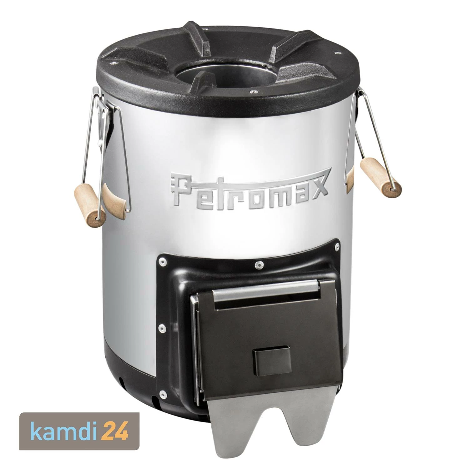 nutzt den Kamineffekt, um eine besonders effiziente und brennstoffsparende Verbrennung zu ermöglichen. An der Unterseite des zylinderförmigen Ofens befinden sich Öffnungen für die Luftzufuhr, die das Feuer mit Sauerstoff versorgen. Die Brennkammer wird nur für das Nachlegen von Brennholz seitlich geöffnet, was bequem über eine Edelstahl-Ablage erfolgt. Die heißen Rauchgase des Feuers werden über den innenliegenden Kamin aus der Brennkammer nach oben zum gusseisernen Aufsatz geleitet, wo die Wärme gespeichert und zum Kochen nutzbar gemacht wird.