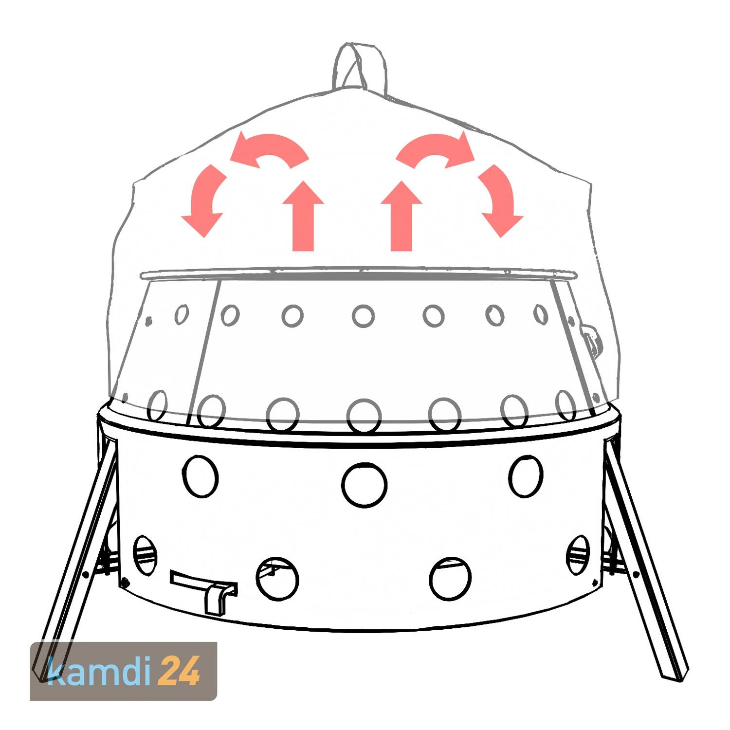 Mit der von verwandeln Sie Ihren in einen Backofen: Die Kuppel aus hitzebeständigen Aramid-Fasern wird einfach auf den Atago gesetzt und schafft so einen Garraum, in dem die Hitze gleichmäßig zirkuliert. So können Sie beispielsweise Pizza auf dem Grillrost backen oder anderes Grillgut mit wenig Hitze oder Restwärme garen.