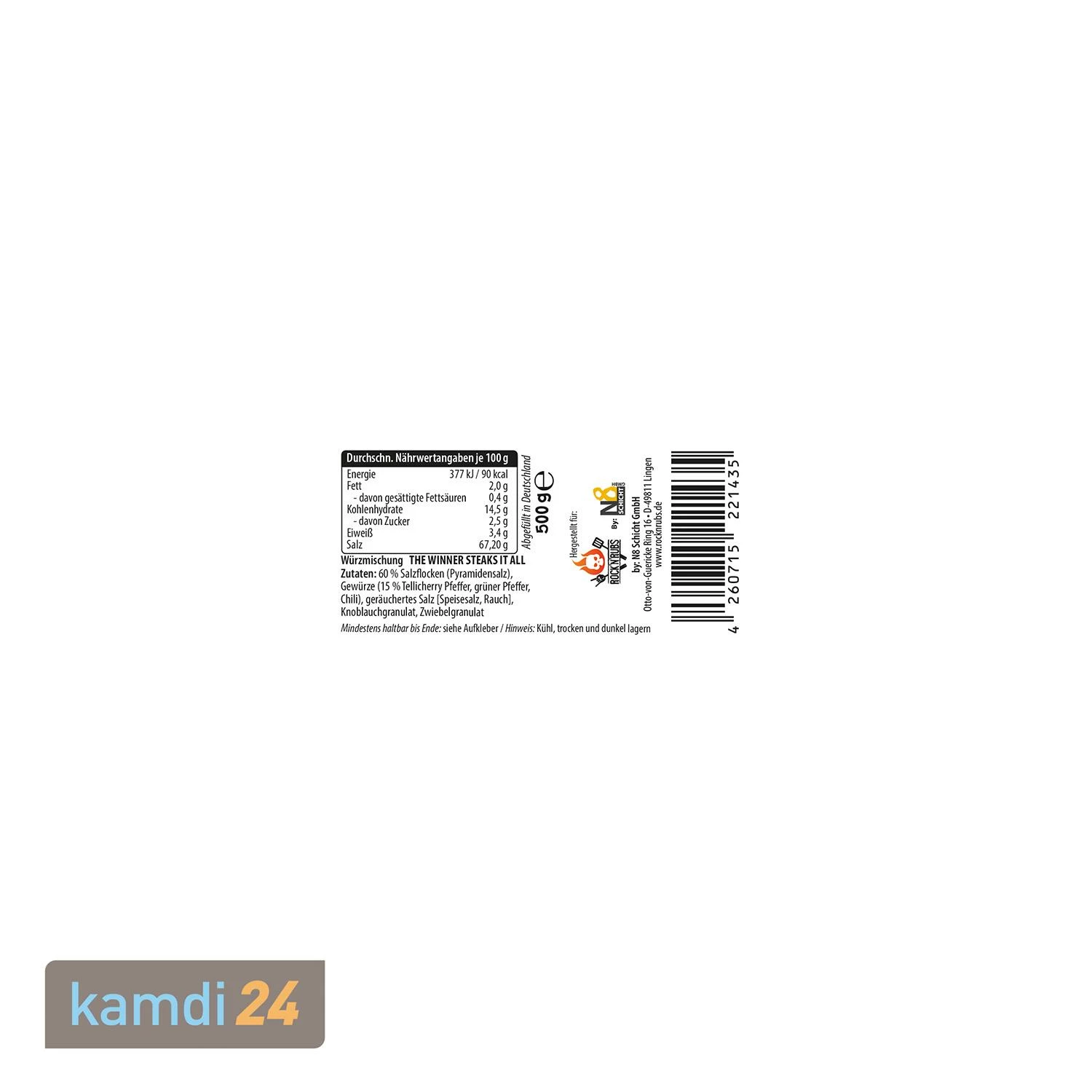 ✓ Die Gewürzzubereitung kann vor dem Grillen oder – bei hohen Grilltemperaturen – als Finisher bei Tisch auf das Grillgut gestreut werden