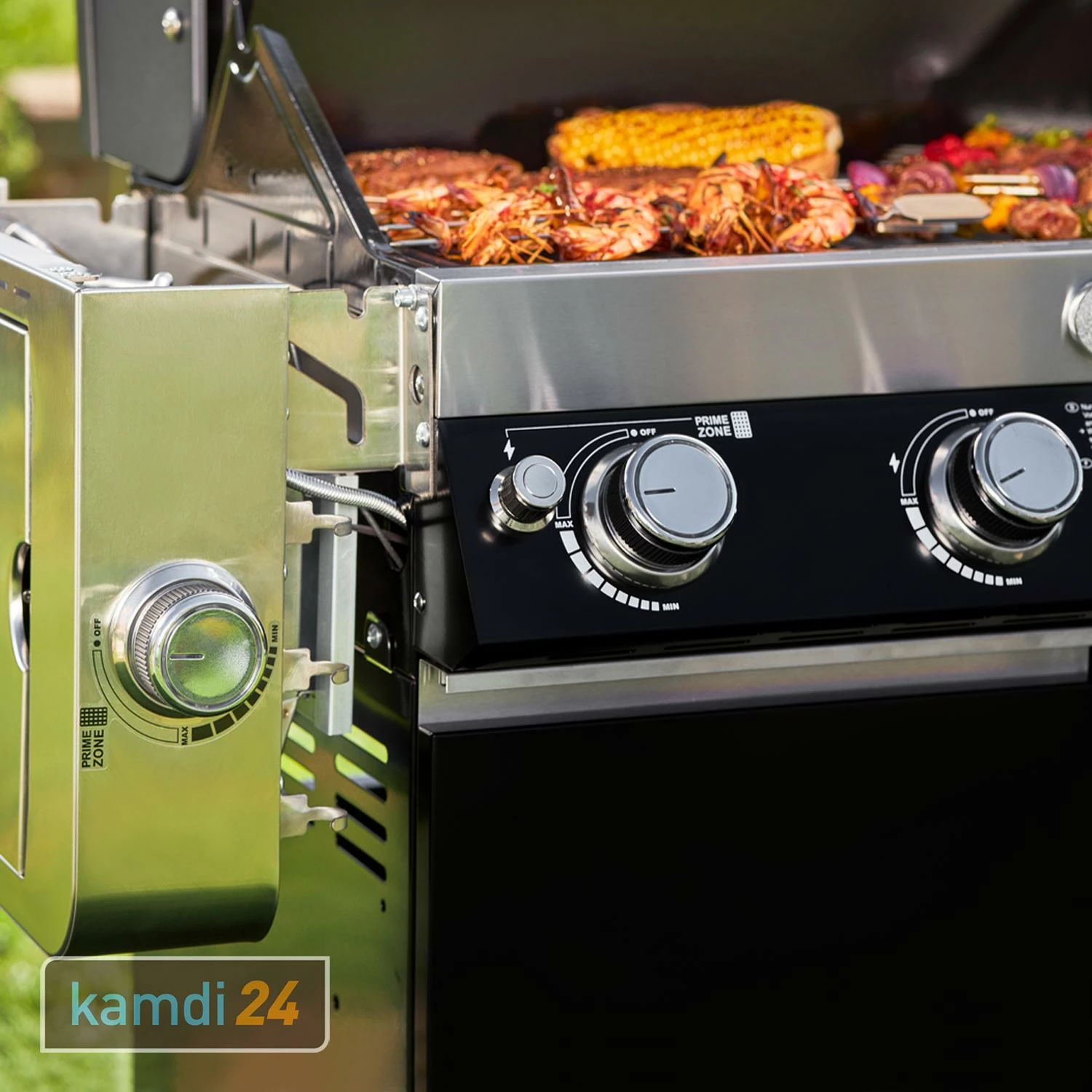 Die Primezone arbeitet mit 3,5 kW und ist mit einer elektronischen Zündung ausgestattet. Auf der 800 °C heißen Zone können Sie das Grillgut vor dem Servieren mit einem krossen Finish versehen – oder Sie braten das Fleisch zu Beginn kurz von allen Seiten scharf an und lassen es anschließend bei indirekter Hitze garziehen.