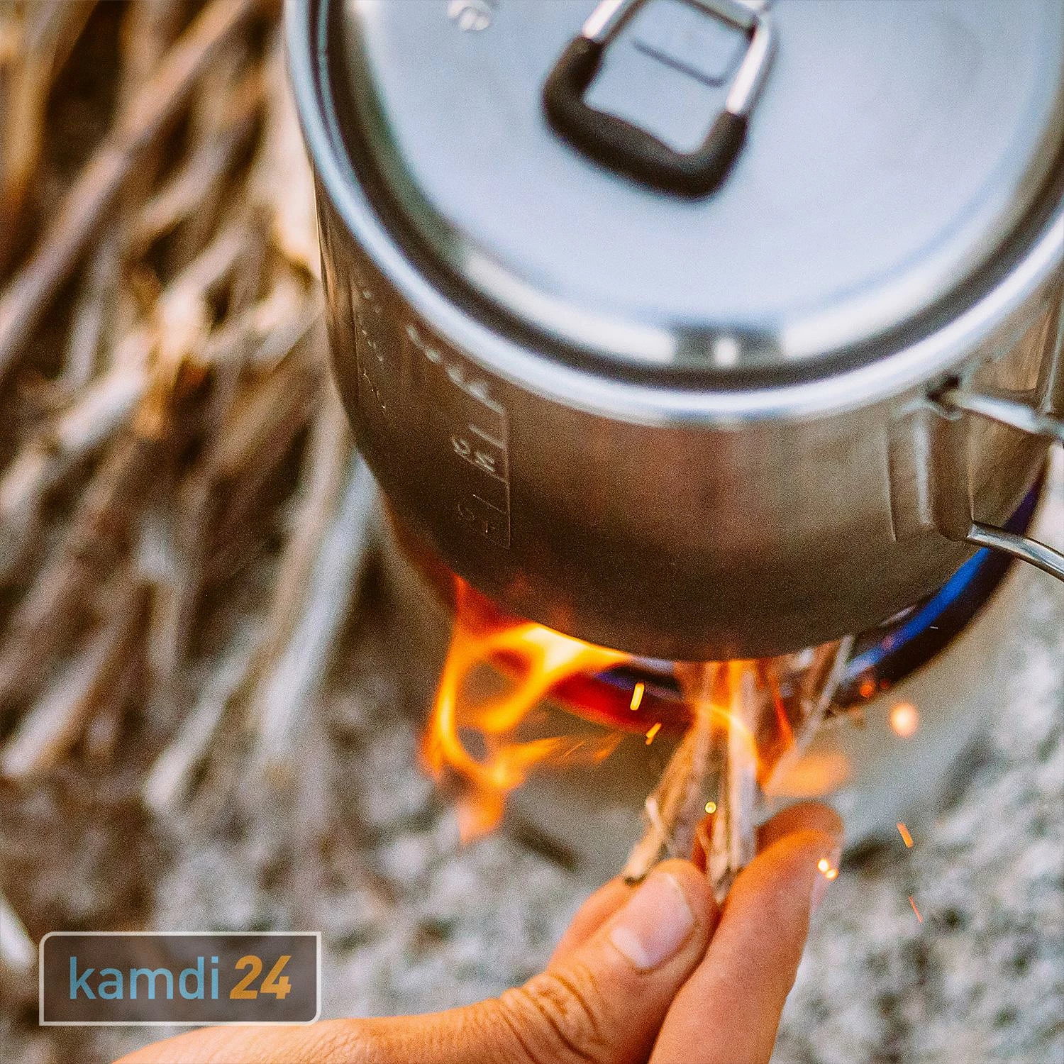 Bei der sollten Sie auf einen geraden Untergrund achten. Für das Feuer können Sie trockene Äste, Zweige oder Blätter sowie kleines Hartholz, z.B. Birke oder Eiche nehmen. Nach dem stellen Sie den Topf oder die Pfanne auf den Feuerring und schon kann es losgehen! Die Speisen sind schnell erwärmt und sie können sowohl Suppen kochen, als auch Würsten grillen oder direkt über den Flammen Marshmallows rösten.