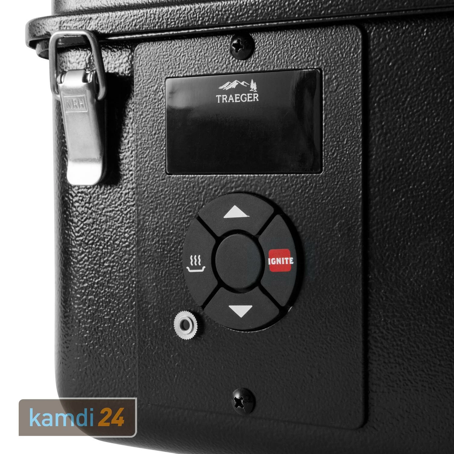 Dank der Verschlüsse am Deckel lässt sich dieser fixieren. So wird der Grill geschlossen und lässt sich gut tragen. Daneben verfügt über einen Griff zum Öffnen des Deckels und Füße, die für einen sicheren Stand sorgen. Das schwarze Gehäuse verleiht dem Pelletgrill den letzten Schliff.