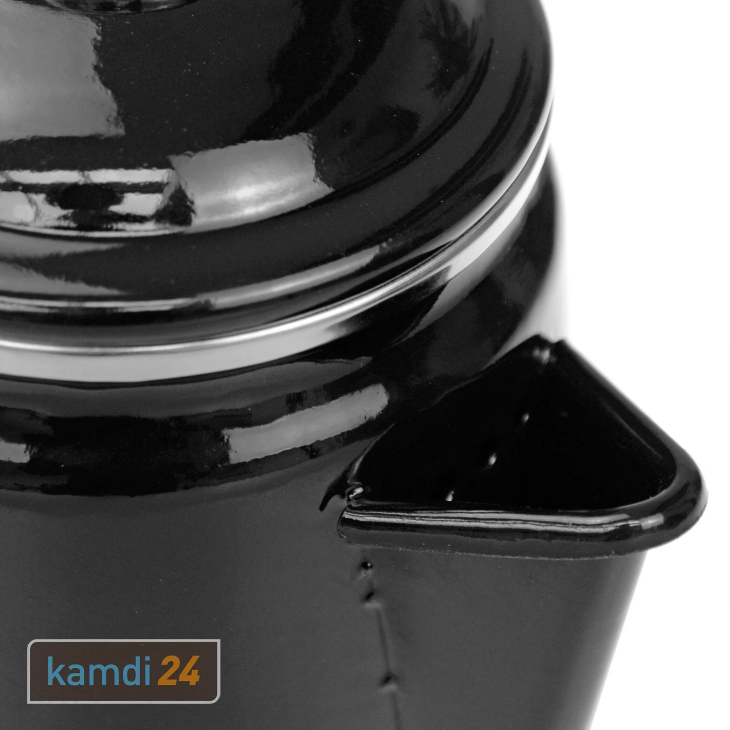 Zu jedem guten Campingausflug gehört auch eine frisch gebrühte Tasse Kaffee oder Tee am Morgen. Besonders gut eignet sich für die Zubereitung der von . In dem robusten Kessel aus emailliertem Stahl können Sie nach dem Perkolationsprinzip Heißgetränke zubereiten. Wenn das Wasser in der Kanne zu kochen beginnt, wird es durch den entstandenen Druck durch ein Röhrchen nach oben gepresst, tropft auf das Kaffeepulver bzw. den Tee im Sieb und läuft langsam durch. Unten angekommen, mischt es sich wieder mit dem verbliebenen Wasser und der Prozess beginnt erneut. Je länger das Wasser auf diese Weise zirkuliert, desto intensiver wird der Geschmack von Kaffee oder Tee.